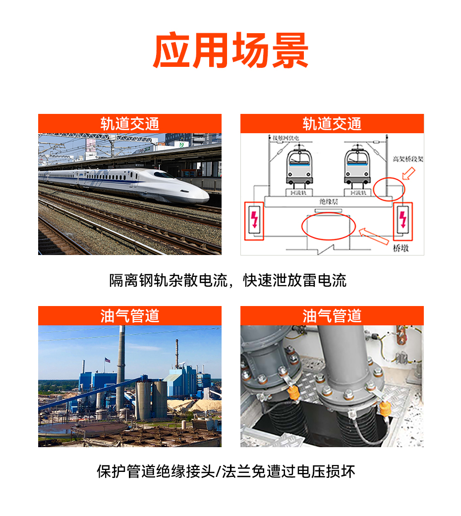 電壓均衡器可應用于石油化工等1、2區的危險區域,可以有效保護石油天然氣輸送管道的絕緣部件免遭暫態及瞬態過電壓的損壞,避免系統失效、停機甚至管線泄漏,防止敏感絕緣法蘭出現火花放電。可實現防雷保護等電位連接,并安全地釋放過電壓,從而保證管線的正常運行。