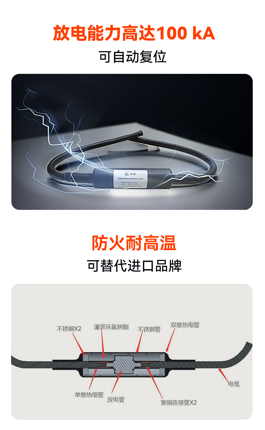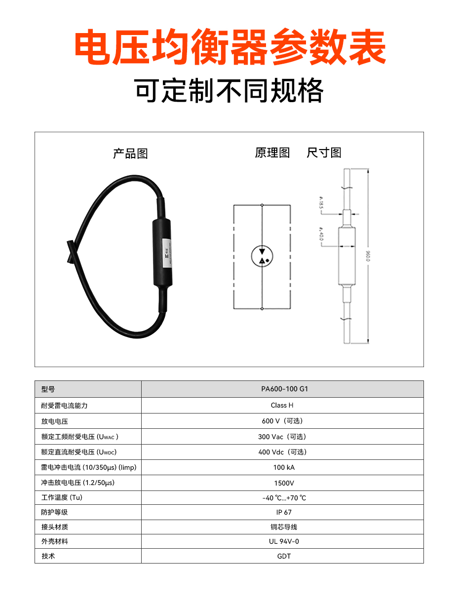 - 防雷能力:隔離放電間隙,H級雷電流耐受能力