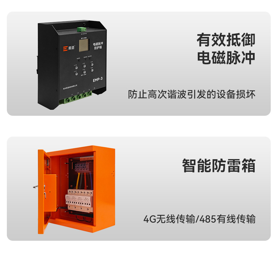 易造隔離式防雷箱、電磁脈沖防護箱、電源防雷箱、智能防雷箱被廣泛應用于通訊基站、數據機房、醫療設備、石油化工、鐵路系統、儲能電站等場景,易造防雷箱采用全模保護,可高效抵御直擊雷(10/350μs)、感應雷(8/20μs)及電磁脈沖輻射。