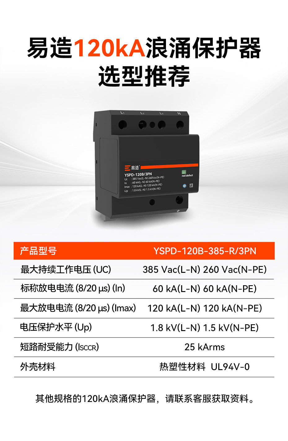 此文關(guān)鍵詞: 120kA二級防浪涌保護(hù)器
