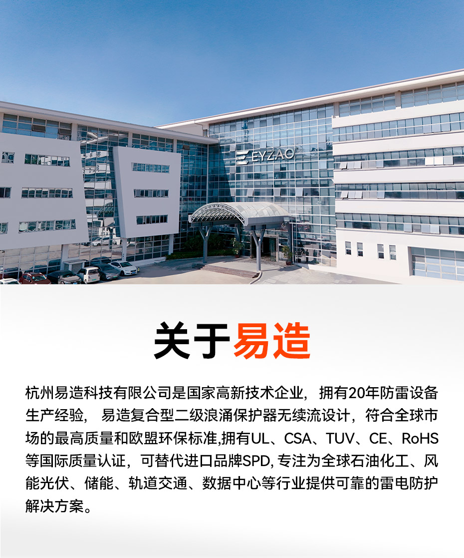 易造T2級大通流浪涌保護(hù)器,擁有UL、TUV、CE等國際質(zhì)量認(rèn)證,符合全球市場的最高安全和RoHS歐盟環(huán)保標(biāo)準(zhǔn),可替代進(jìn)口品牌SPD,支持出口。